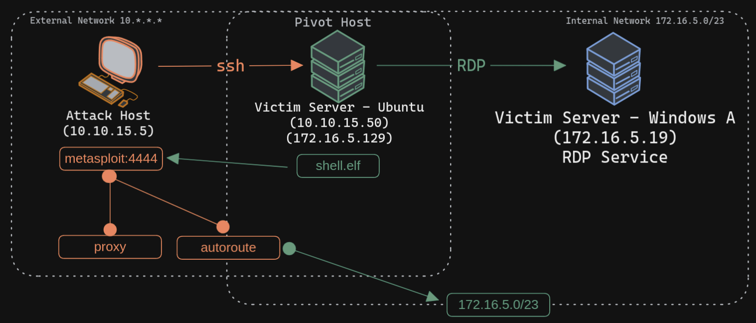 - we have our Meterpreter shell access on the Ubuntu server (the pivot host)