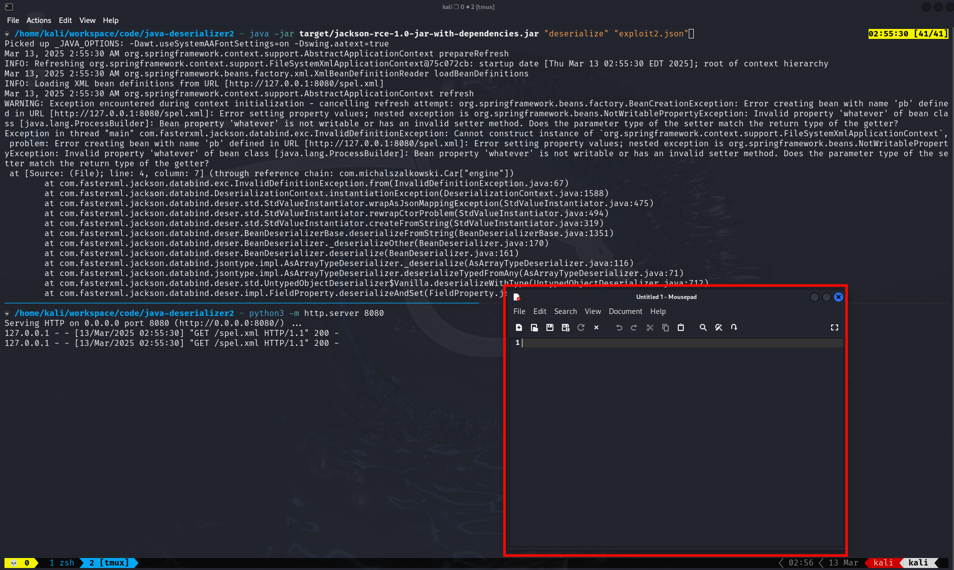 java -jar target/jackson-rce-1.0-jar-with-dependencies.jar "deserialize" "exploit1.json"